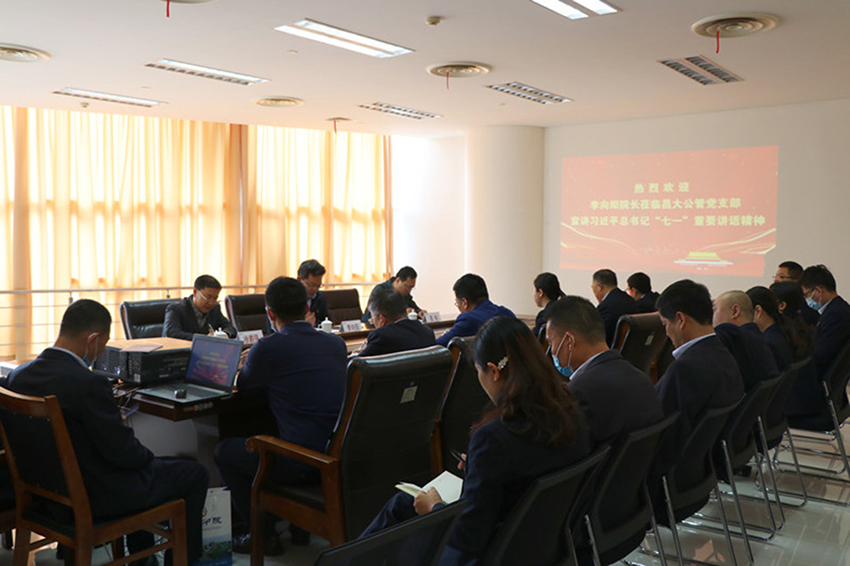 2021年10月19日下午,濰坊市中級人民法院院長李向陽來我支部調研,并就習近平總書記“七一”重要講話精神為我支部上了一堂黨課。